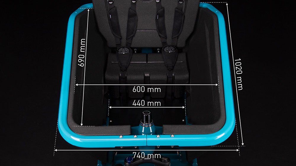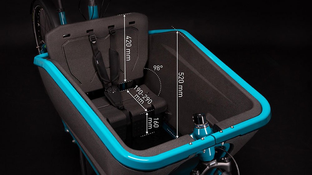Top Wetterschutz bietet das optional erhältliche Regenverdeck – und der optionale Kindersitz nimmt auch Kinder sicher und stylish mit durch die City. Und dann die große Transportbox: Darin findet fast jede Art von Ladung Platz. Verantwortlich für höchste Sicherheit und Kontrolle über Ladung und Straße sind die starken hydraulischen Scheibenbremsen von Magura, die griffigen Schwalbe Reifen und die integrierten Schutzbleche. Den angenehmen Fahrkomfort hat das E-Bike der Federgabel zu verdanken. Und durch die LED-Vorder- und Rücklichter heißt es zu jeder Zeit: Sehen und gesehen werden. Kurz gesagt: Dieser Lasten-Allrounder liefert immer und überall top Support.