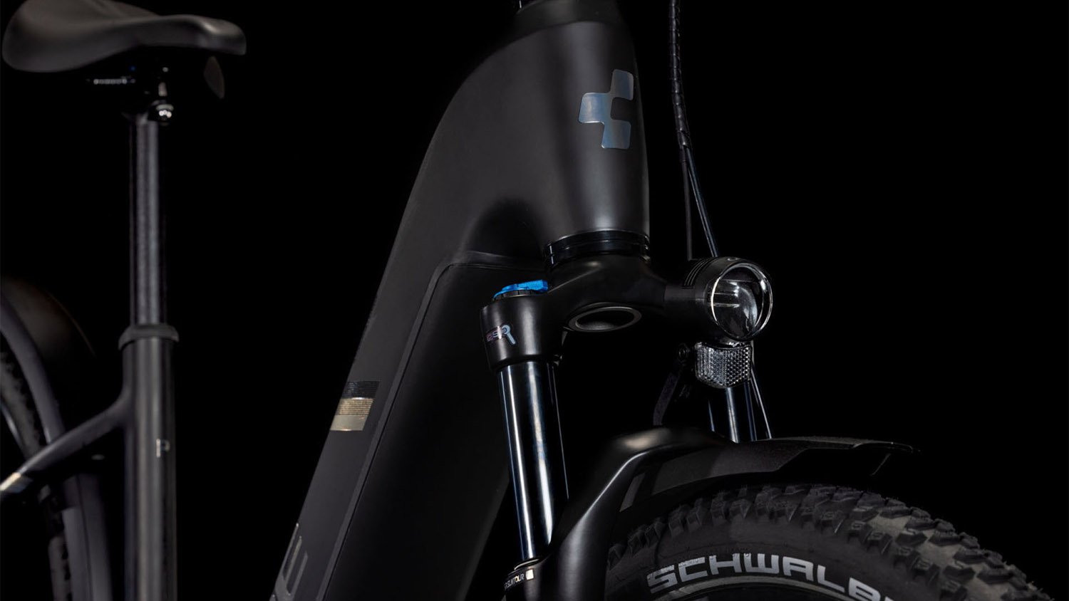 Der Tiefeinsteiger-Rahmen des Nuride Hybrid hält, was sein Name verspricht – einfaches, unkompliziertes Auf- und Absteigen sind damit garantiert. Doch da ist noch mehr: Neben einer Federgabel mit 100 mm Federweg für ein Plus an Fahrkomfort und Kontrolle hat CUBE das Chassis mit großzügiger Reifenfreiheit (sogar inklusive der mitgelieferten Schutzbleche) ausgestattet. Im Inneren verlaufende Züge unterstreichen die cleane Optik des Rahmens und verursachen kaum Wartungsaufwand. Ebenso harmonisch ins Design integriert sind der Bosch CX Antrieb und der PowerTube Akku. Außerdem gibt’s einen Kettenschutz sowie ein UDH für einfachere Ersatzteilverfügbarkeit. Was noch? Serienmäßig verbaute Schutzbleche, Lichter und ein Seitenständer. Da kann das nächste Touren-Abenteuer kommen!