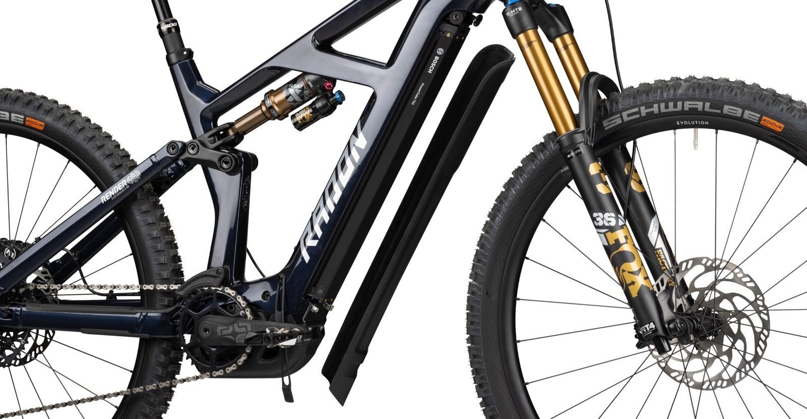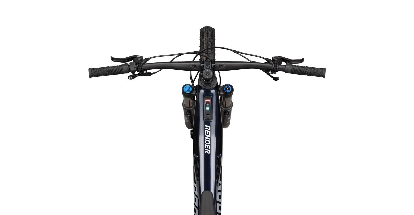 Unser RENDER ist ein moderner Klassiker, seit der Saison 2022 kommt er zusätzlich noch als Überarbeitung für das neue Bosch Smart System. Was bleibt, sind der hochmoderne, leichte und sehr steife Carbonrahmen mit dem prägnanten Flügel zwischen Ober- und Unterrohr, der elegant auch den Dämpfer aufnimmt. Ebenso erhalten bleiben die 140mm Federweg am Hinterbau, die wir an der Front mit 160mm Federgabeln kombinieren. Im Unterrohr kann der kapazitätsstarke 750 Wh Akku untergebracht werden, der den brutal starken Bosch Performance CX Motor mit seinen 85 Nm antreibt. Neu ist auch die Ladebuchse für die Batterie, die auf der linken Seite des Sitzrohrs liegt und bei Nichtbenutzung von einer kleinen, drehbaren Scheibe vor Schmutz geschützt wird. Der Speedsensor sitzt bei der neuesten RENDER Variante im Ausfallende, der Signal gebende Magnet dreht sich in der hinteren Bremsscheibe. Optional kann der neue RENDER Rahmen im Oberrohr ein Display aufnehmen, wo Du dann alle Daten äußerst praktisch direkt im Blick hast.